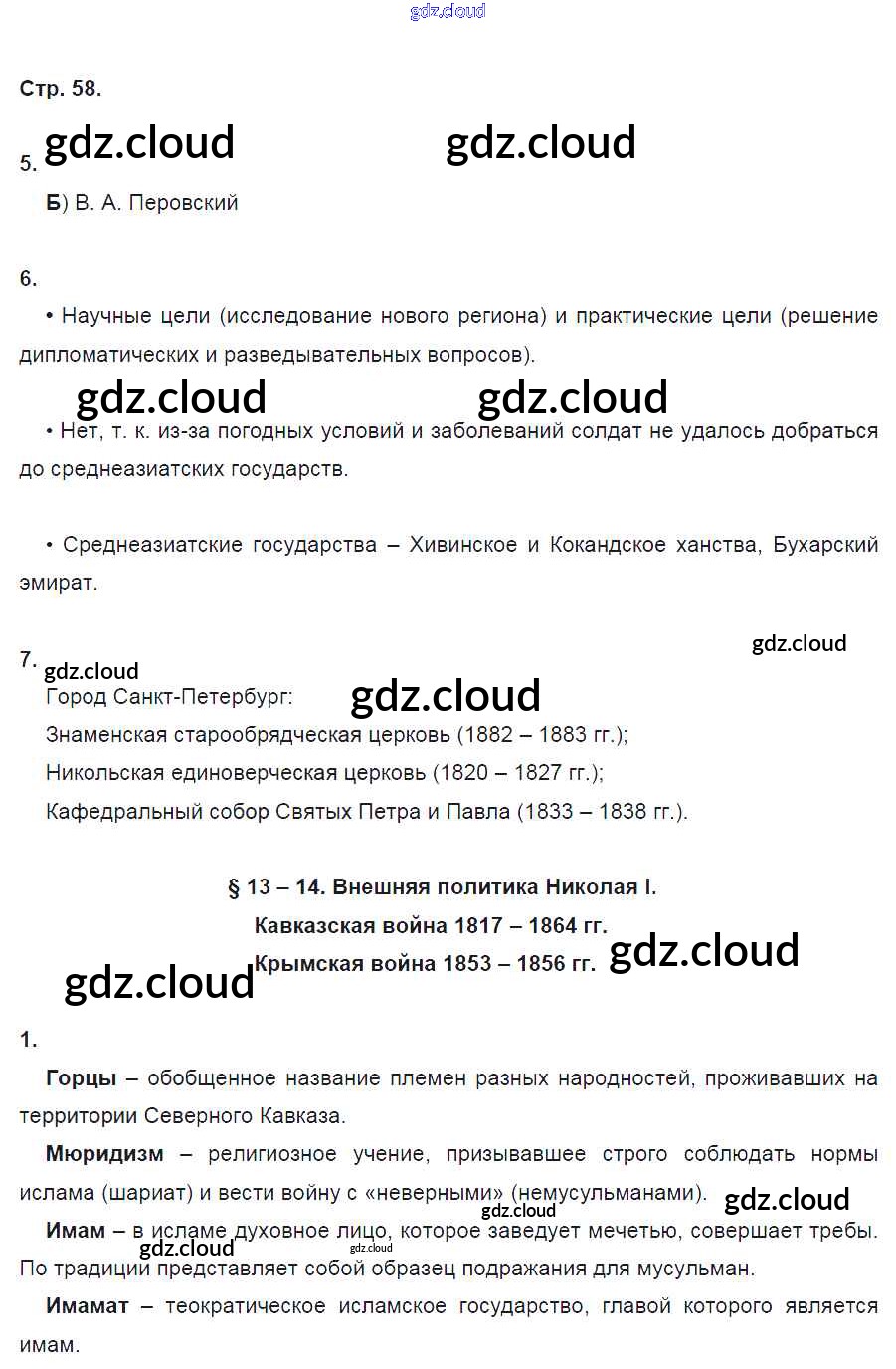 Ответ на задание стр.58 Рабочая тетрадь История за 9 (девятый) класс Данилов, Косулина, Лукутин, Макарова УМК 2017 Часть 1, 2