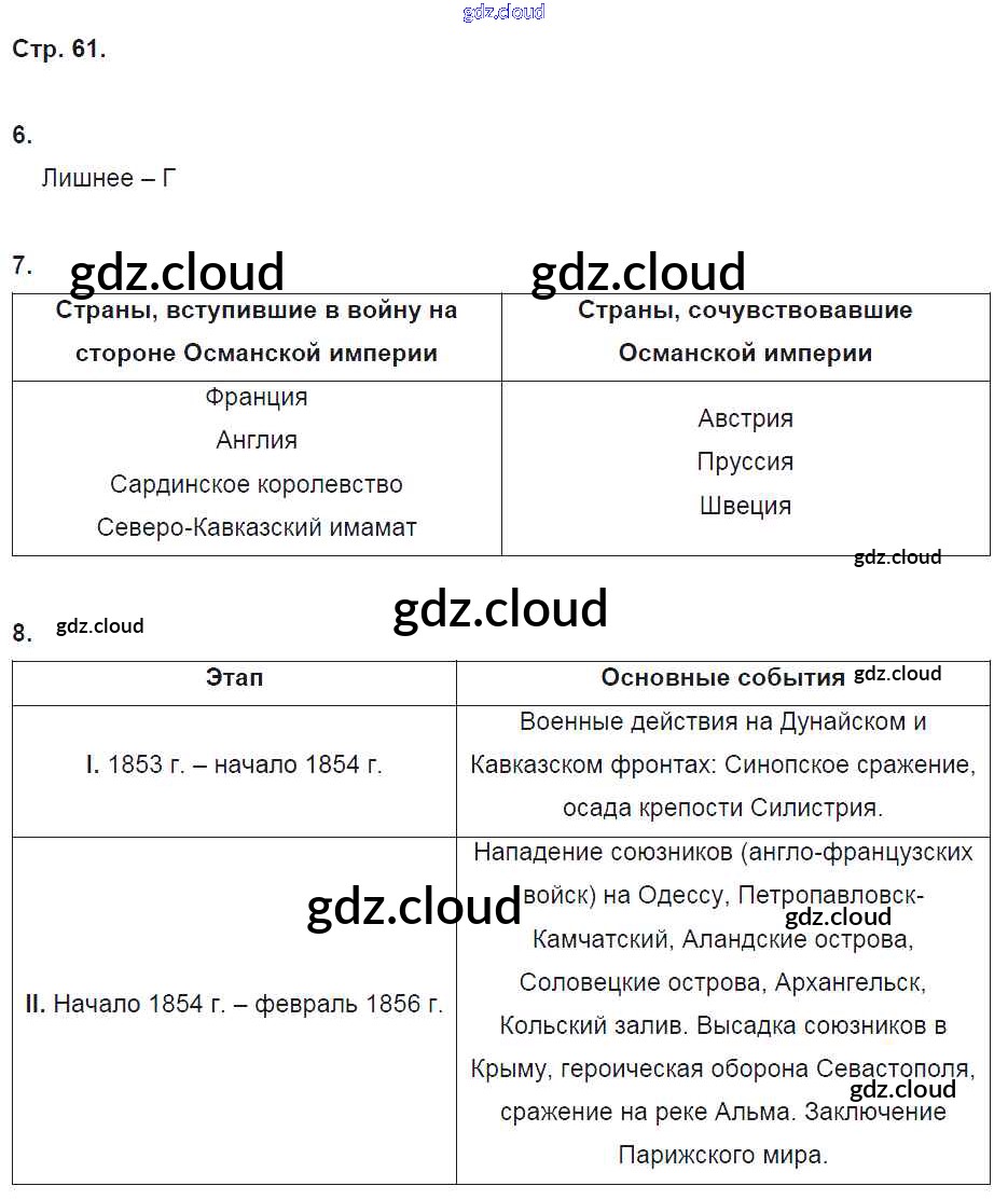Ответ на задание стр.61 Рабочая тетрадь История за 9 (девятый) класс Данилов, Косулина, Лукутин, Макарова УМК 2017 Часть 1, 2