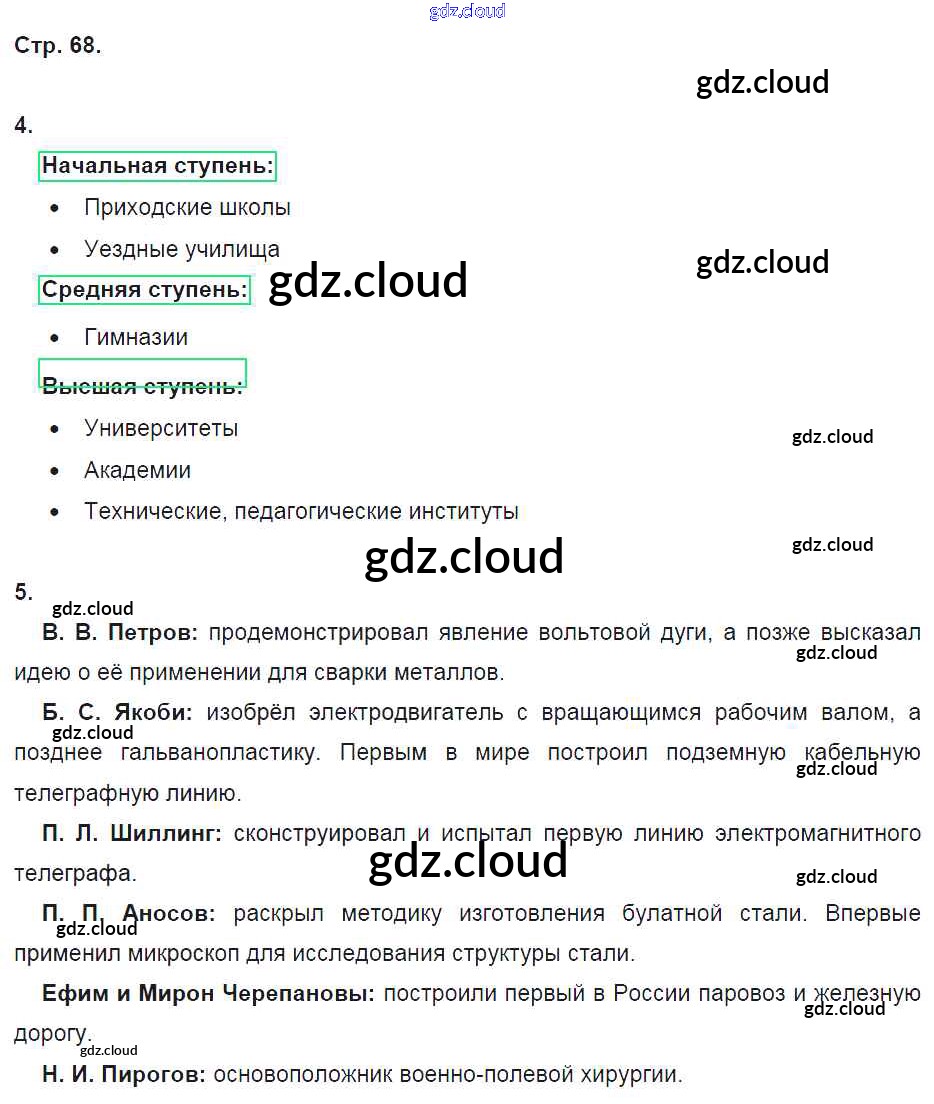 Ответ на задание стр.68 Рабочая тетрадь История за 9 (девятый) класс Данилов, Косулина, Лукутин, Макарова УМК 2017 Часть 1, 2
