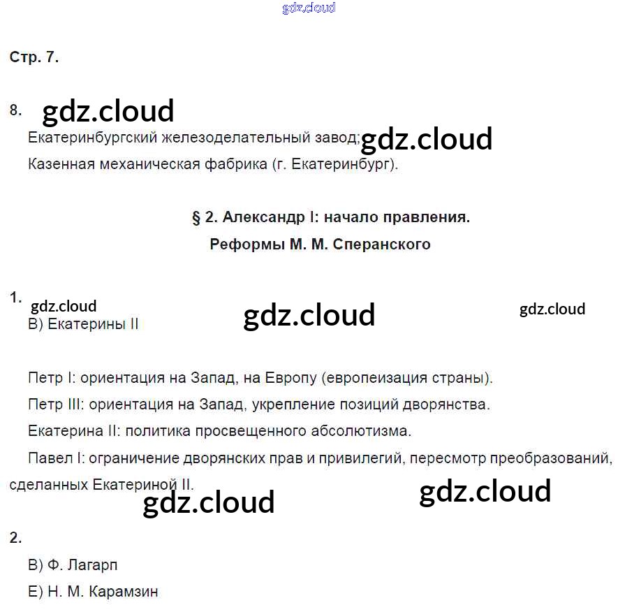 Ответ на задание стр.7 Рабочая тетрадь История за 9 (девятый) класс Данилов, Косулина, Лукутин, Макарова УМК 2017 Часть 1, 2
