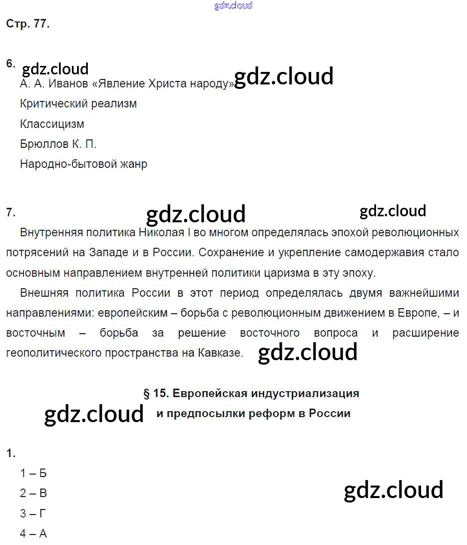 Ответ на задание стр.77 Рабочая тетрадь История за 9 (девятый) класс Данилов, Косулина, Лукутин, Макарова УМК 2017 Часть 1, 2