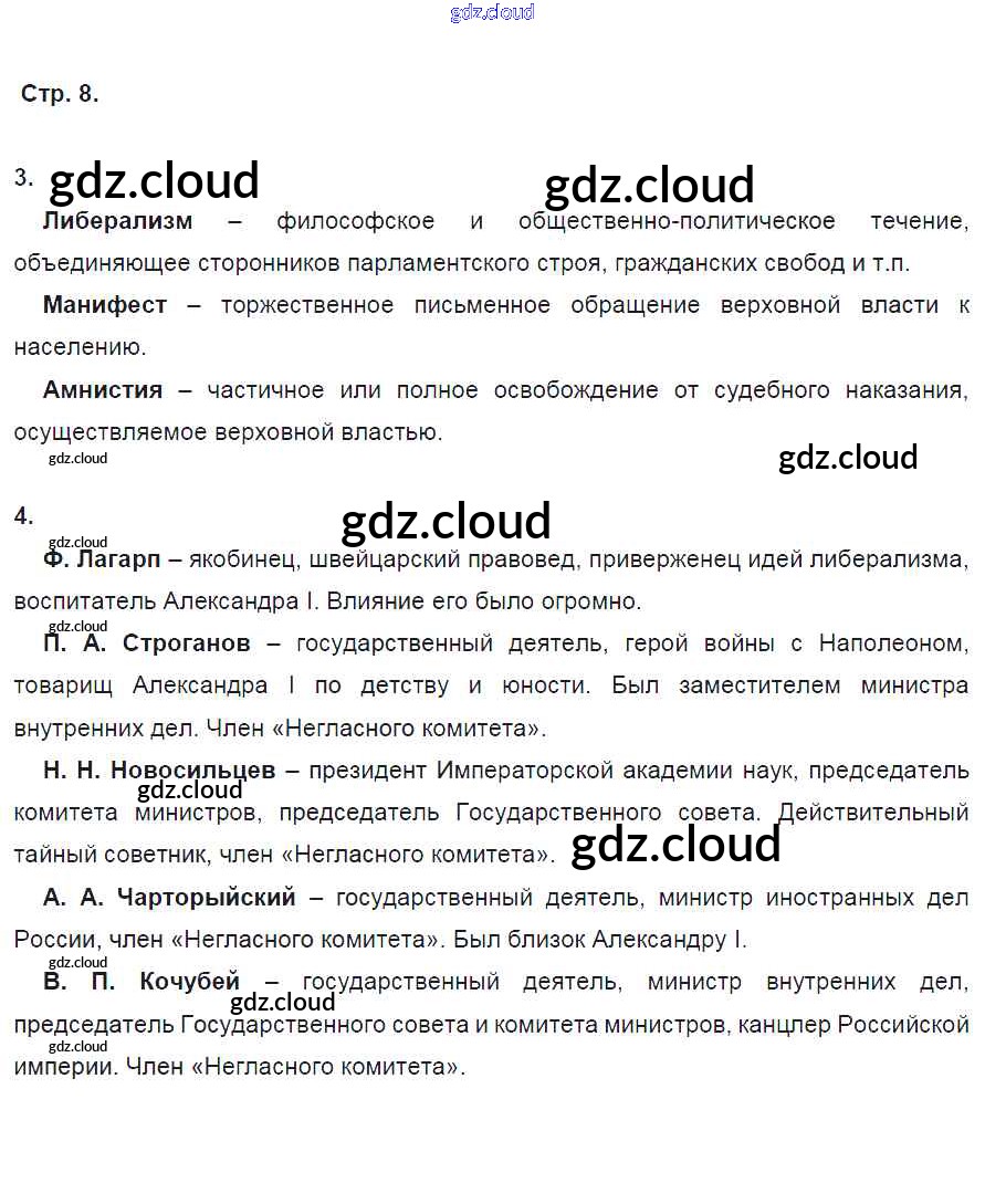 Ответ на задание стр.8 Рабочая тетрадь История за 9 (девятый) класс Данилов, Косулина, Лукутин, Макарова УМК 2017 Часть 1, 2
