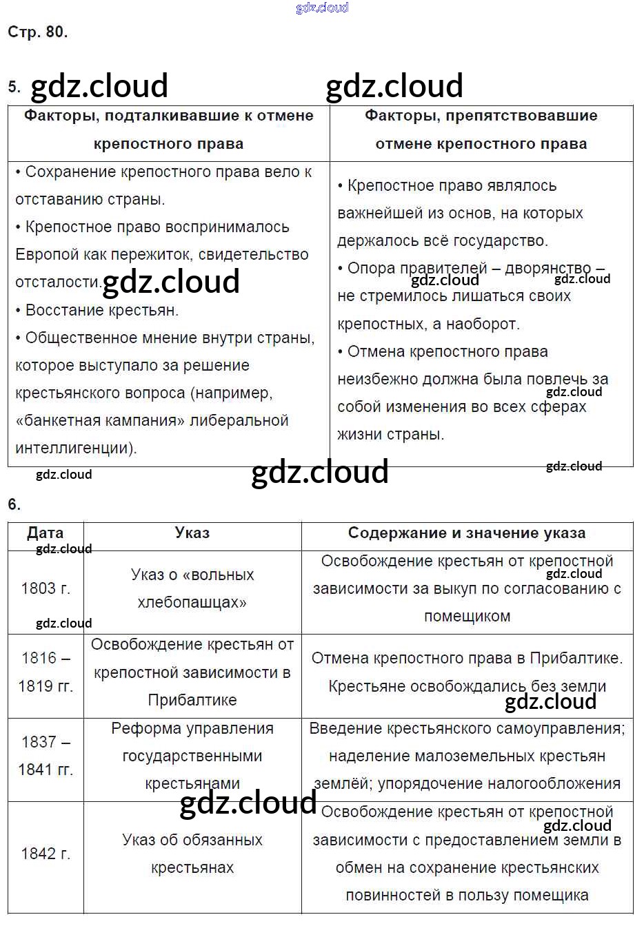 Ответ на задание стр.80 Рабочая тетрадь История за 9 (девятый) класс Данилов, Косулина, Лукутин, Макарова УМК 2017 Часть 1, 2
