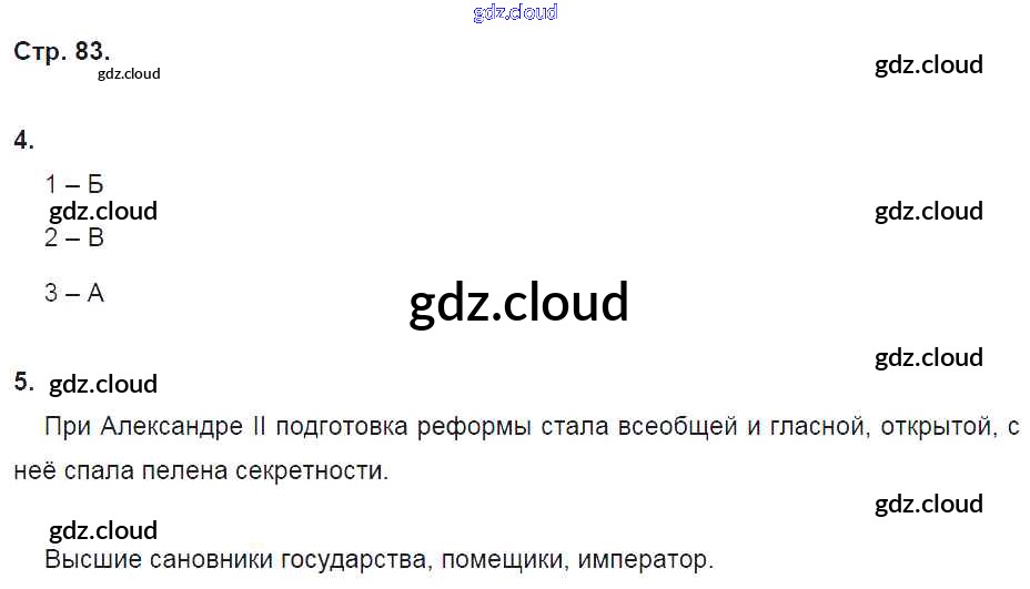 Ответ на задание стр.83 Рабочая тетрадь История за 9 (девятый) класс Данилов, Косулина, Лукутин, Макарова УМК 2017 Часть 1, 2