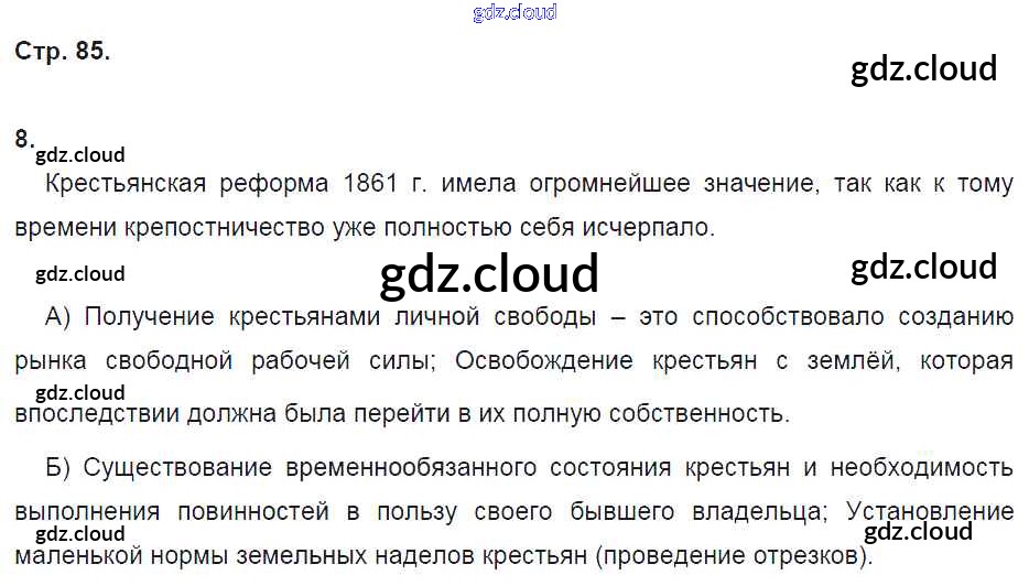 Ответ на задание стр.85 Рабочая тетрадь История за 9 (девятый) класс Данилов, Косулина, Лукутин, Макарова УМК 2017 Часть 1, 2
