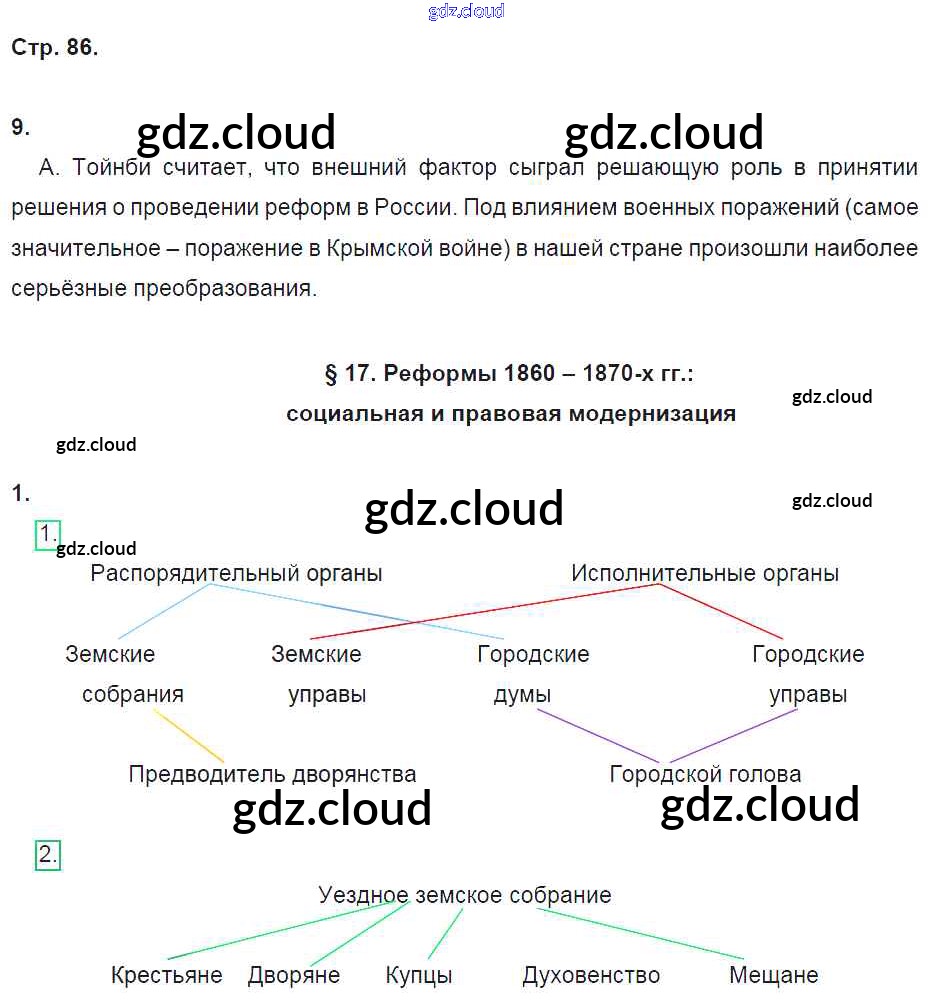 Ответ на задание стр.86 Рабочая тетрадь История за 9 (девятый) класс Данилов, Косулина, Лукутин, Макарова УМК 2017 Часть 1, 2