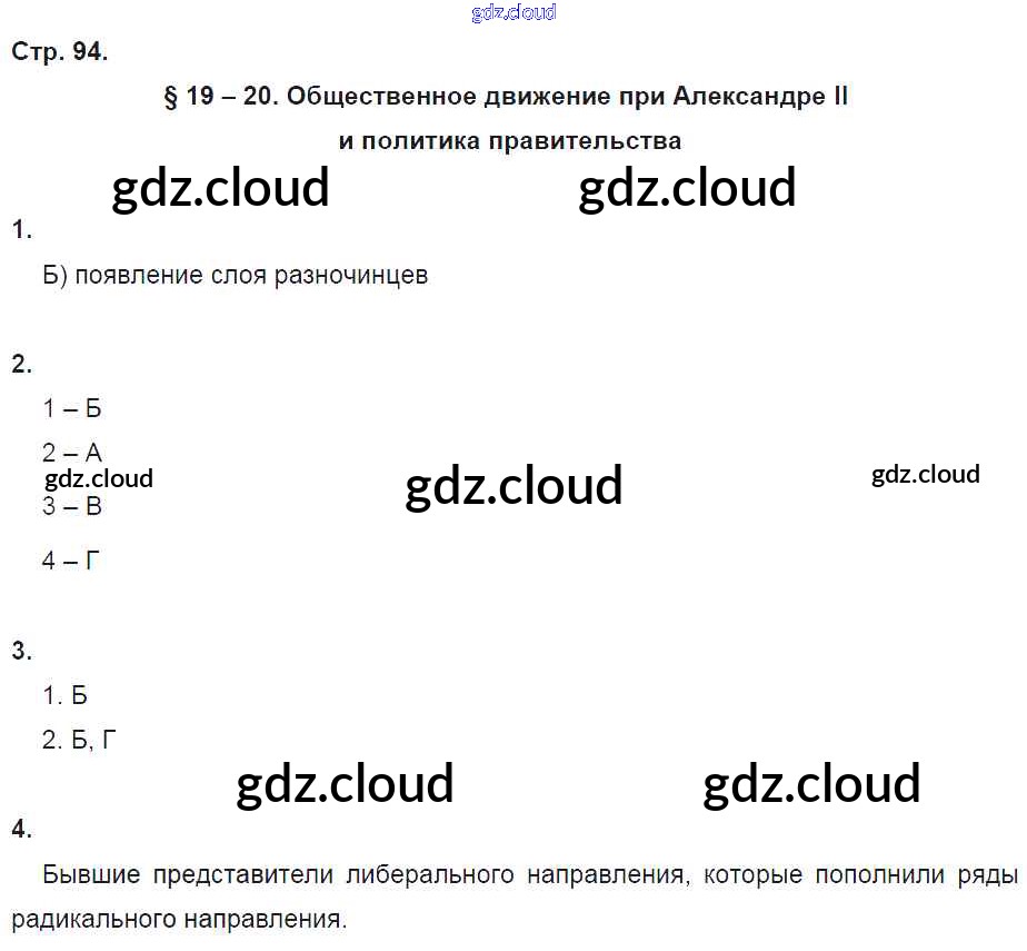 Ответ на задание стр.94 Рабочая тетрадь История за 9 (девятый) класс Данилов, Косулина, Лукутин, Макарова УМК 2017 Часть 1, 2