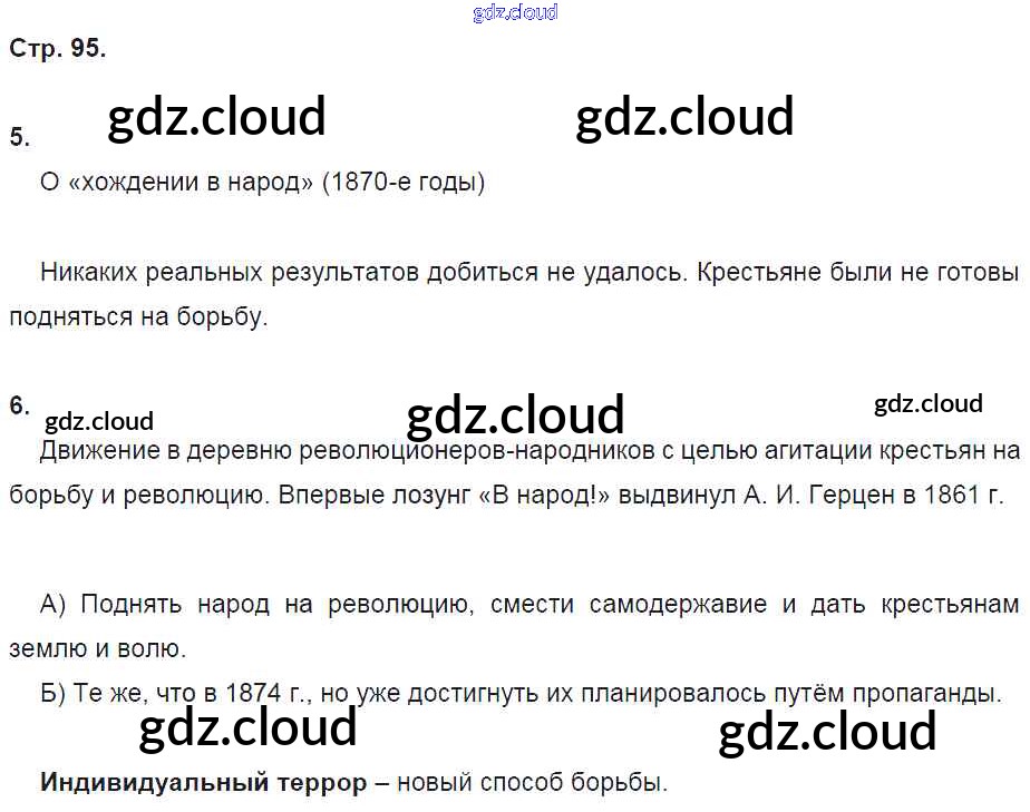 Ответ на задание стр.95 Рабочая тетрадь История за 9 (девятый) класс Данилов, Косулина, Лукутин, Макарова УМК 2017 Часть 1, 2