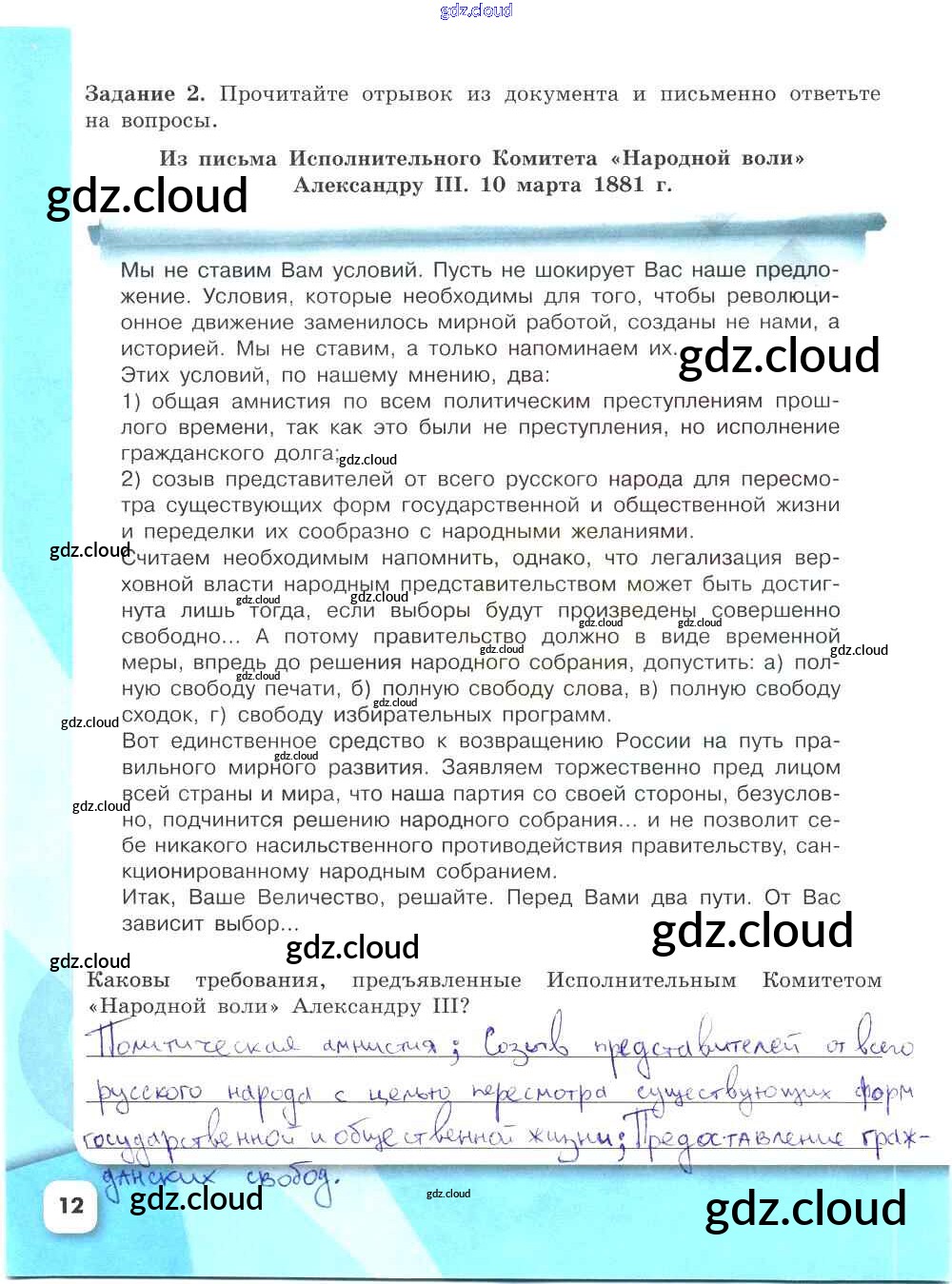 Ответ на задание стр.12 Рабочая тетрадь История за 9 (девятый) класс Данилов, Косулина, Лукутин, Макарова УМК 2017 Часть 1, 2