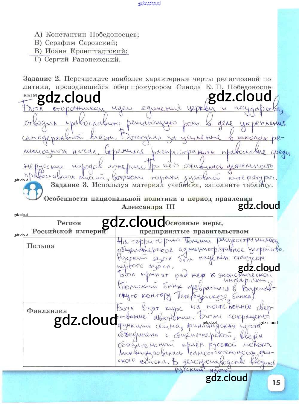 Ответ на задание стр.15 Рабочая тетрадь История за 9 (девятый) класс Данилов, Косулина, Лукутин, Макарова УМК 2017 Часть 1, 2