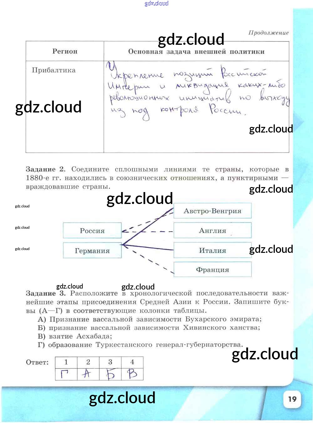 Ответ на задание стр.19 Рабочая тетрадь История за 9 (девятый) класс Данилов, Косулина, Лукутин, Макарова УМК 2017 Часть 1, 2