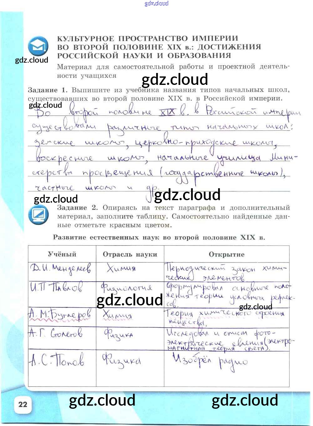 Ответ на задание стр.22 Рабочая тетрадь История за 9 (девятый) класс Данилов, Косулина, Лукутин, Макарова УМК 2017 Часть 1, 2