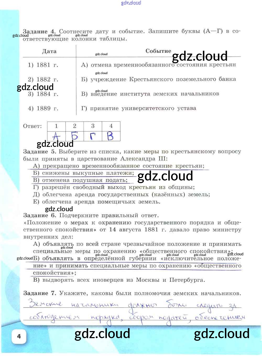 Ответ на задание стр.4 Рабочая тетрадь История за 9 (девятый) класс Данилов, Косулина, Лукутин, Макарова УМК 2017 Часть 1, 2