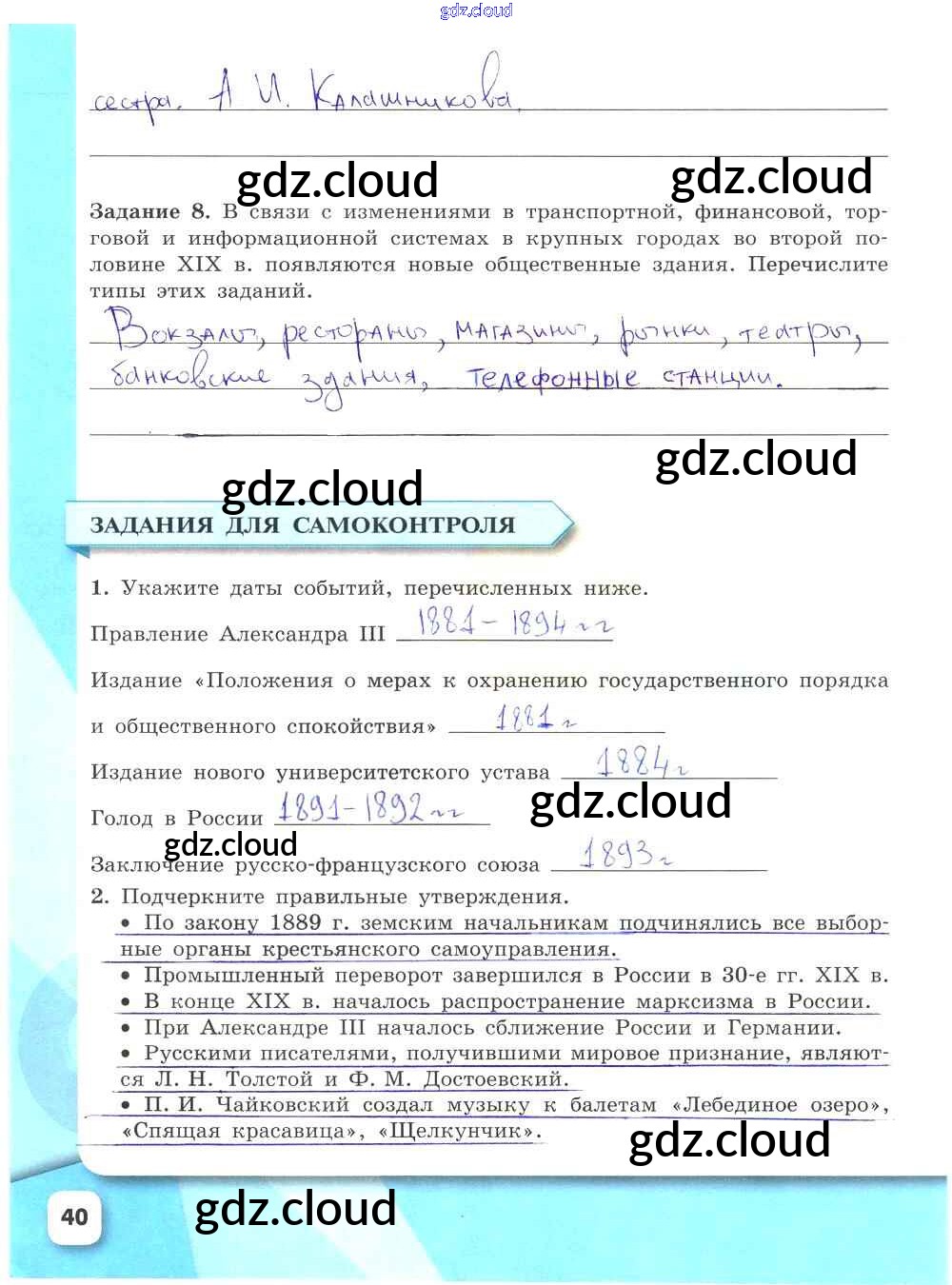 Ответ на задание стр.40 Рабочая тетрадь История за 9 (девятый) класс Данилов, Косулина, Лукутин, Макарова УМК 2017 Часть 1, 2