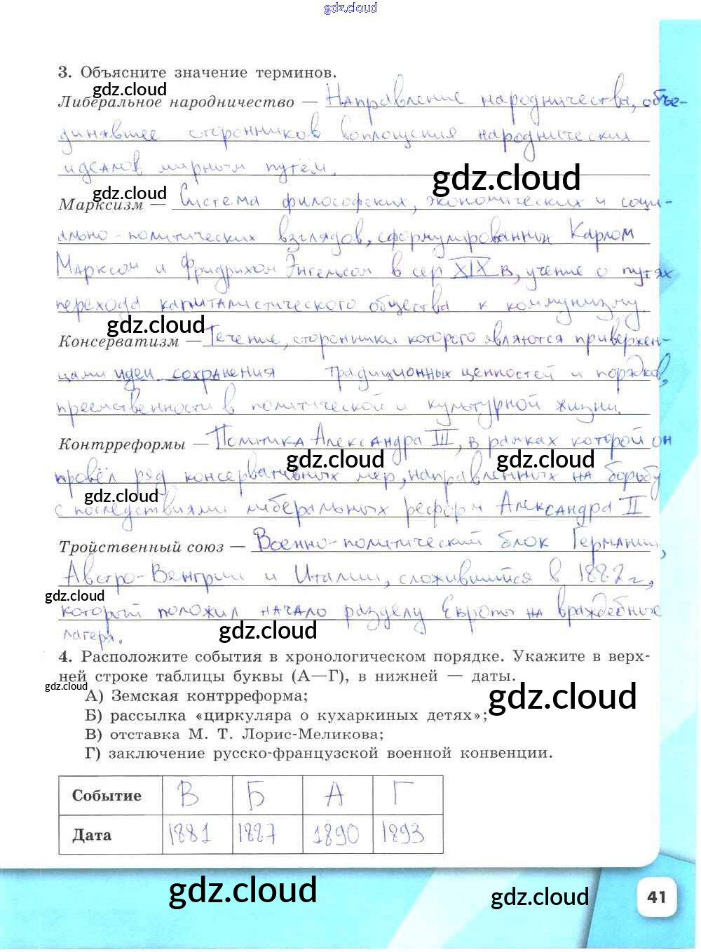 Ответ на задание стр.41 Рабочая тетрадь История за 9 (девятый) класс Данилов, Косулина, Лукутин, Макарова УМК 2017 Часть 1, 2