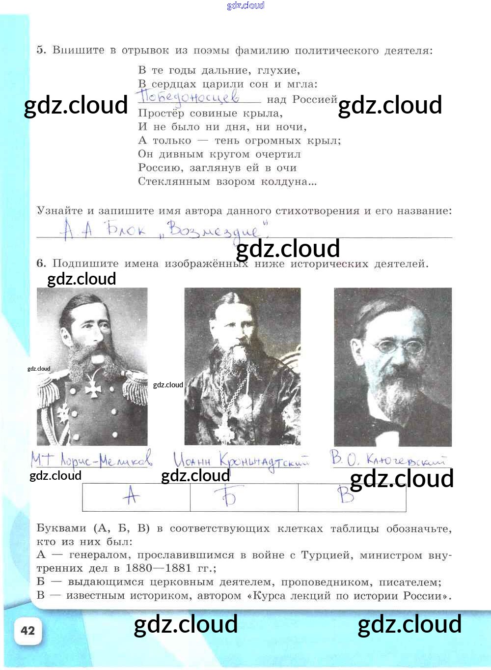 Ответ на задание стр.42 Рабочая тетрадь История за 9 (девятый) класс Данилов, Косулина, Лукутин, Макарова УМК 2017 Часть 1, 2