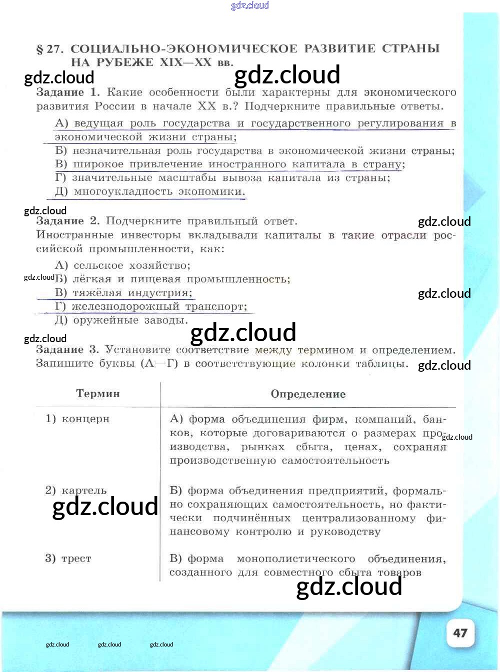 Ответ на задание стр.47 Рабочая тетрадь История за 9 (девятый) класс Данилов, Косулина, Лукутин, Макарова УМК 2017 Часть 1, 2
