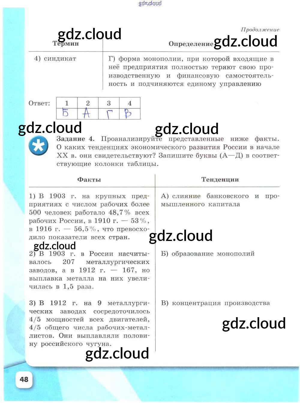 Ответ на задание стр.48 Рабочая тетрадь История за 9 (девятый) класс Данилов, Косулина, Лукутин, Макарова УМК 2017 Часть 1, 2