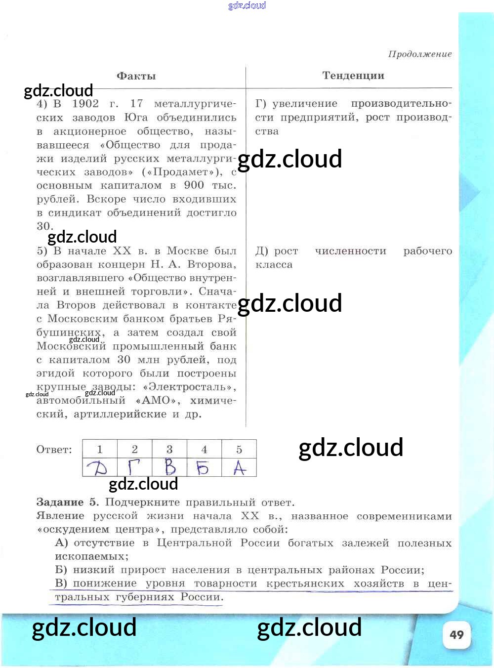 Ответ на задание стр.49 Рабочая тетрадь История за 9 (девятый) класс Данилов, Косулина, Лукутин, Макарова УМК 2017 Часть 1, 2