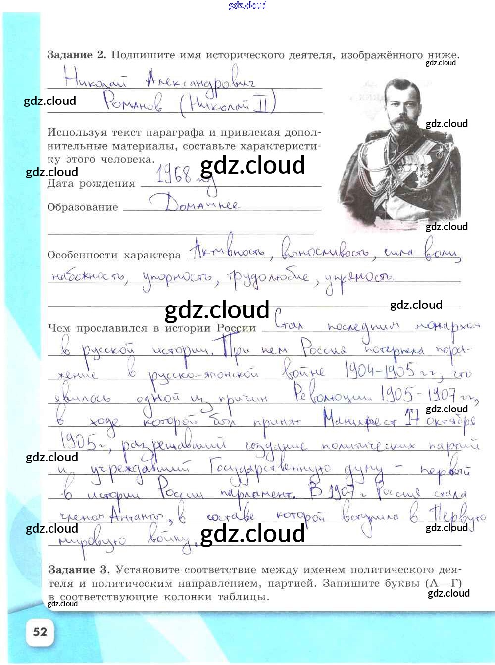 Ответ на задание стр.52 Рабочая тетрадь История за 9 (девятый) класс Данилов, Косулина, Лукутин, Макарова УМК 2017 Часть 1, 2