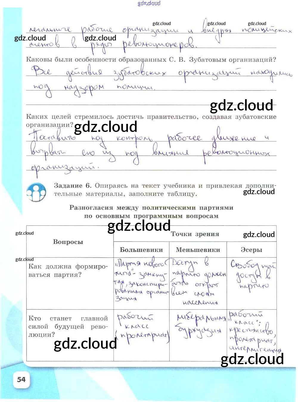 Ответ на задание стр.54 Рабочая тетрадь История за 9 (девятый) класс Данилов, Косулина, Лукутин, Макарова УМК 2017 Часть 1, 2
