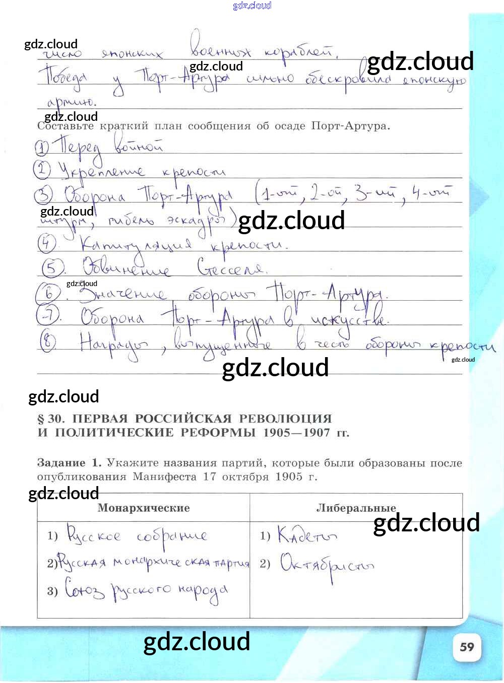 Ответ на задание стр.59 Рабочая тетрадь История за 9 (девятый) класс Данилов, Косулина, Лукутин, Макарова УМК 2017 Часть 1, 2