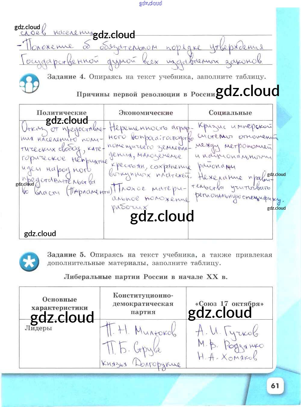 Ответ на задание стр.61 Рабочая тетрадь История за 9 (девятый) класс Данилов, Косулина, Лукутин, Макарова УМК 2017 Часть 1, 2