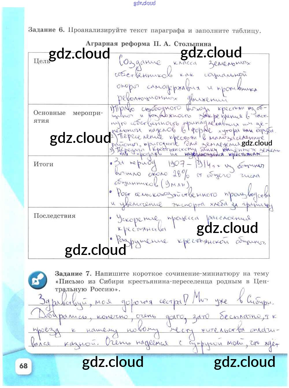 Ответ на задание стр.68 Рабочая тетрадь История за 9 (девятый) класс Данилов, Косулина, Лукутин, Макарова УМК 2017 Часть 1, 2