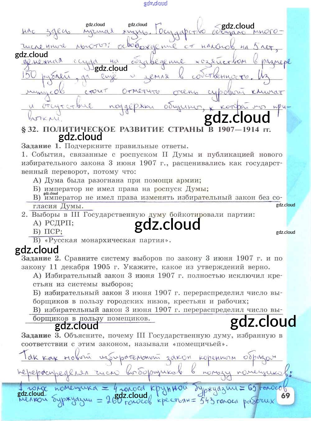 Ответ на задание стр.69 Рабочая тетрадь История за 9 (девятый) класс Данилов, Косулина, Лукутин, Макарова УМК 2017 Часть 1, 2