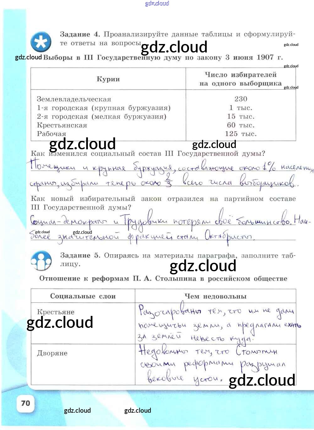 Ответ на задание стр.70 Рабочая тетрадь История за 9 (девятый) класс Данилов, Косулина, Лукутин, Макарова УМК 2017 Часть 1, 2