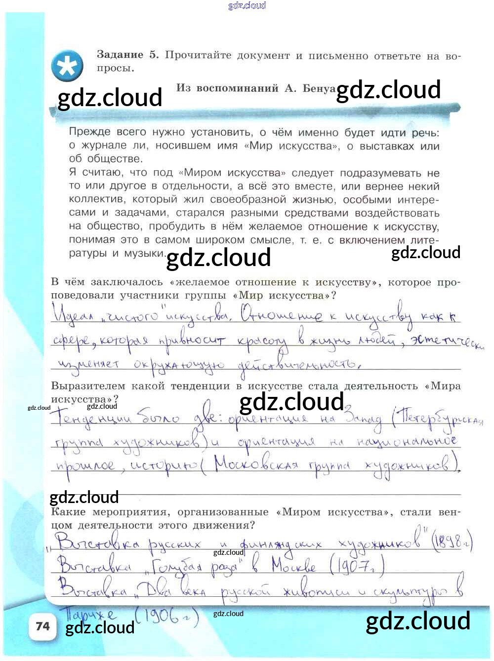 Ответ на задание стр.74 Рабочая тетрадь История за 9 (девятый) класс Данилов, Косулина, Лукутин, Макарова УМК 2017 Часть 1, 2