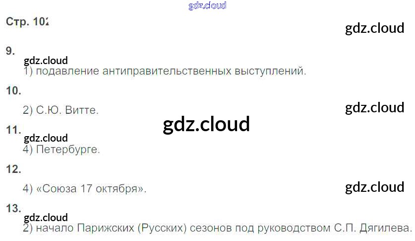 Ответ на задание 102 Рабочая тетрадь История за 9 (девятый) класс Гевуркова УМК 2019 ФГОС онлайн и без номера телефона.