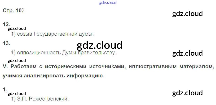 Ответ на задание 107 Рабочая тетрадь История за 9 (девятый) класс Гевуркова УМК 2019 ФГОС онлайн и без номера телефона.