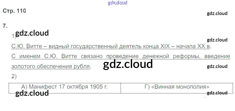 Ответ на задание 110 Рабочая тетрадь История за 9 (девятый) класс Гевуркова УМК 2019 ФГОС онлайн и без номера телефона.
