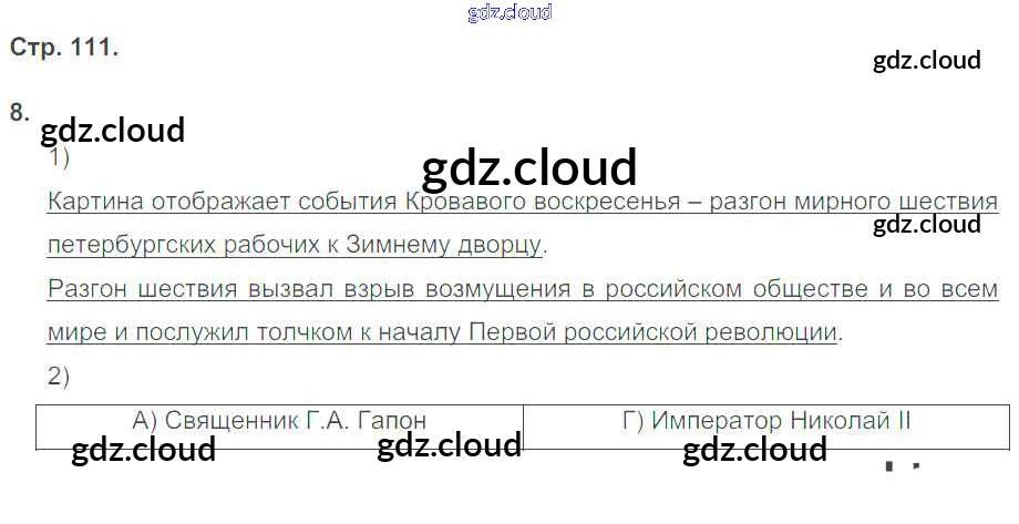 Ответ на задание 111 Рабочая тетрадь История за 9 (девятый) класс Гевуркова УМК 2019 ФГОС онлайн и без номера телефона.