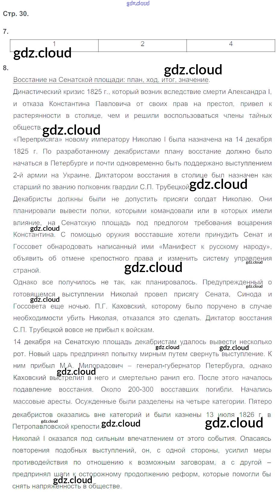 Ответ на задание 30 Рабочая тетрадь История за 9 (девятый) класс Гевуркова УМК 2019 ФГОС онлайн и без номера телефона.