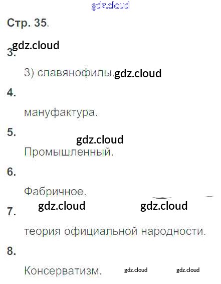 Ответ на задание 35 Рабочая тетрадь История за 9 (девятый) класс Гевуркова УМК 2019 ФГОС онлайн и без номера телефона.
