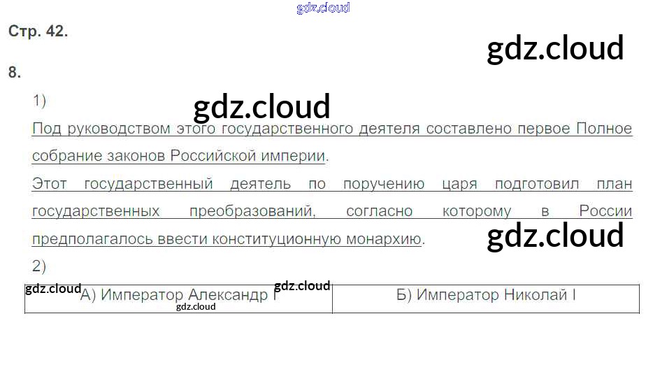 Ответ на задание 42 Рабочая тетрадь История за 9 (девятый) класс Гевуркова УМК 2019 ФГОС онлайн и без номера телефона.