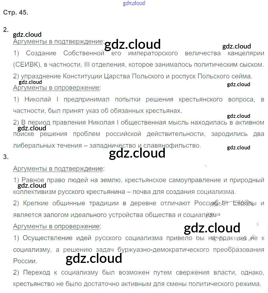 Ответ на задание 45 Рабочая тетрадь История за 9 (девятый) класс Гевуркова УМК 2019 ФГОС онлайн и без номера телефона.