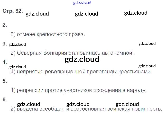 Ответ на задание 62 Рабочая тетрадь История за 9 (девятый) класс Гевуркова УМК 2019 ФГОС онлайн и без номера телефона.