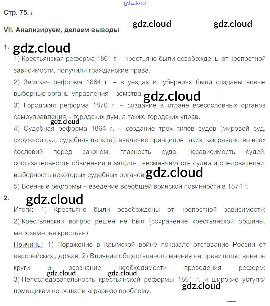 Ответ на задание 75 Рабочая тетрадь История за 9 (девятый) класс Гевуркова УМК 2019 ФГОС онлайн и без номера телефона.