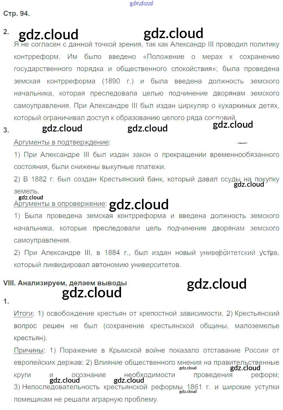 Ответ на задание 94 Рабочая тетрадь История за 9 (девятый) класс Гевуркова УМК 2019 ФГОС онлайн и без номера телефона.