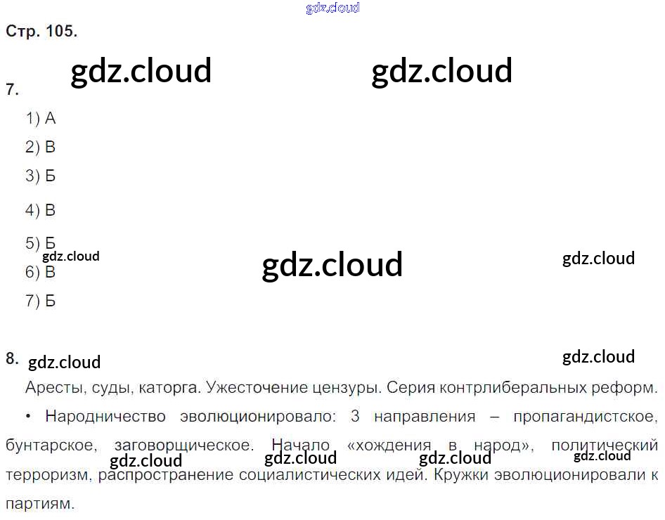 Ответ на задание 105 Рабочая тетрадь История за 9 (девятый) класс Симонова, Клоков Вертикаль 2017 ФГОС онлайн и без номера телефона.