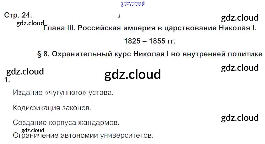 Ответ на задание 24 Рабочая тетрадь История за 9 (девятый) класс Симонова, Клоков Вертикаль 2017 ФГОС онлайн и без номера телефона.