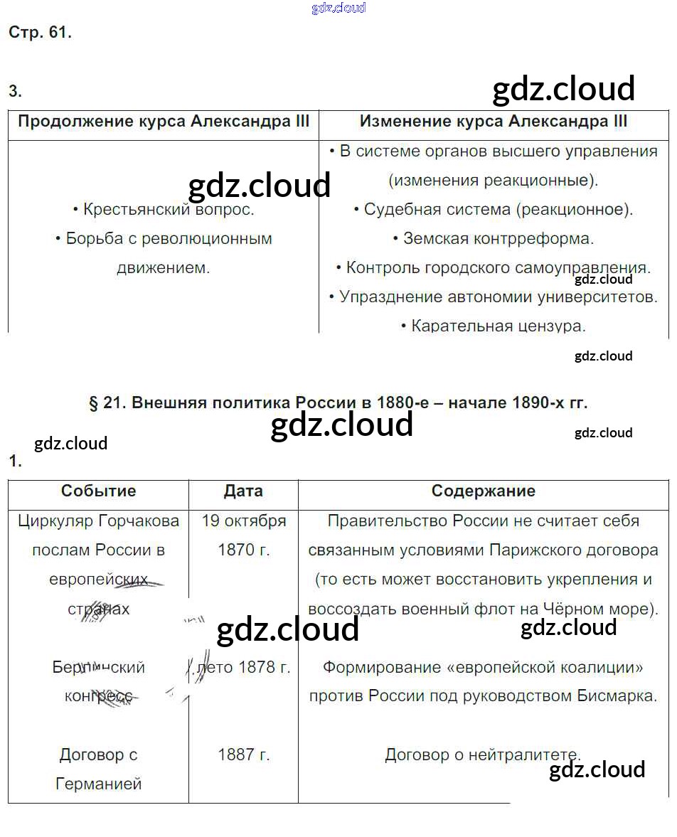 Ответ на задание 61 Рабочая тетрадь История за 9 (девятый) класс Симонова, Клоков Вертикаль 2017 ФГОС онлайн и без номера телефона.