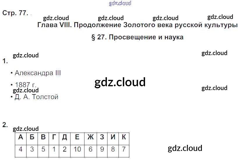 Ответ на задание 77 Рабочая тетрадь История за 9 (девятый) класс Симонова, Клоков Вертикаль 2017 ФГОС онлайн и без номера телефона.