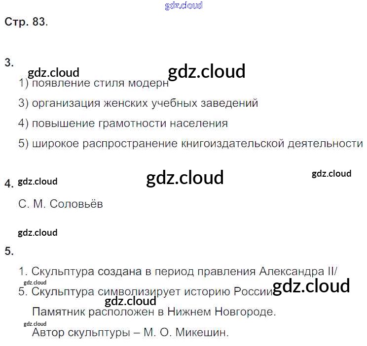 Ответ на задание 83 Рабочая тетрадь История за 9 (девятый) класс Симонова, Клоков Вертикаль 2017 ФГОС онлайн и без номера телефона.