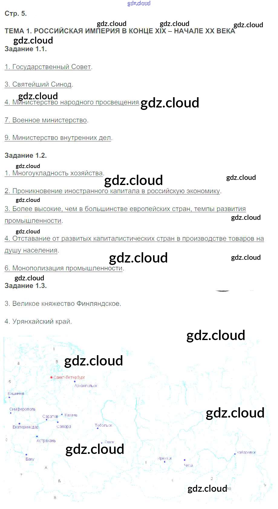 Ответ на задание 5 Рабочая тетрадь с контурными картами История за 9 (девятый) класс Симонова УМК 2014 ФГОС онлайн и без номера телефона.