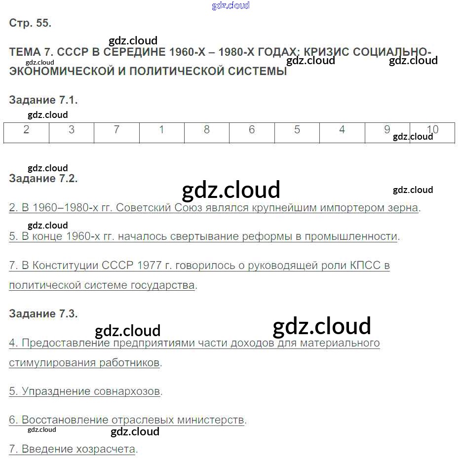 Ответ на задание 55 Рабочая тетрадь с контурными картами История за 9 (девятый) класс Симонова УМК 2014 ФГОС онлайн и без номера телефона.