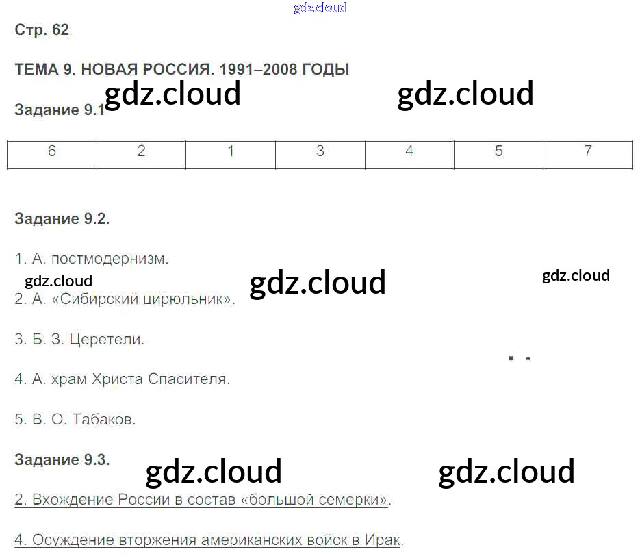Ответ на задание 62 Рабочая тетрадь с контурными картами История за 9 (девятый) класс Симонова УМК 2014 ФГОС онлайн и без номера телефона.